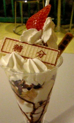 で、上の写真のパフェ『銀さんチョコパフェ』です。